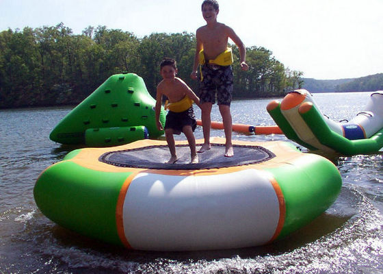 نفخ الترامبولين المياه هو متعة كبيرة للألعاب الرياضات المائية. يمكن وضعها في البحيرة، المحيط، الشاطئ، حمام سباحة، الخ. يمكن للأطفال والكبار الحصول على الكثير من المرح من هذا الترامبولين.